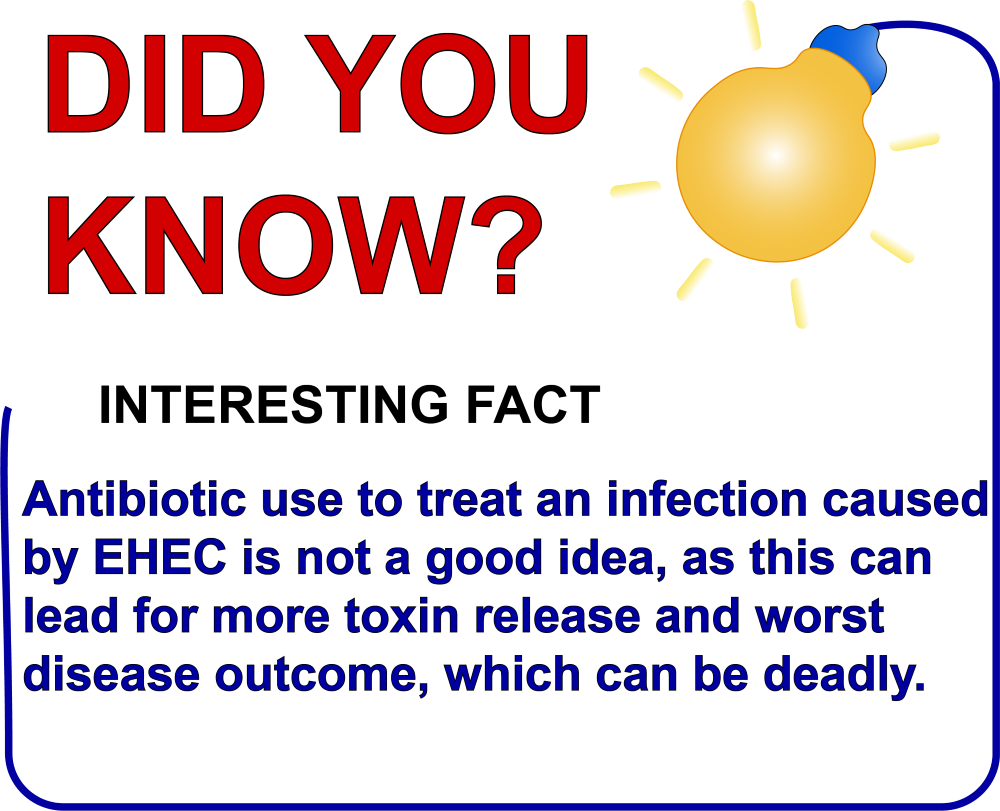 Once the EHEC colonizes and resides in the human intestine, it leads to diarrhea in infected people. When a person infected with EHEC is treated with antibiotics, which would normally kill the bacteria, it can lead to an alarm response in the bacteria (also known as an "SOS response") and cause them to produce more Shiga toxin. For this reason, EHEC bacterial infections should not be treated with antibiotic therapy. EHEC outbreaks throughout the world are often fatal, and there is a need for more therapeutic options to treat EHEC infections.