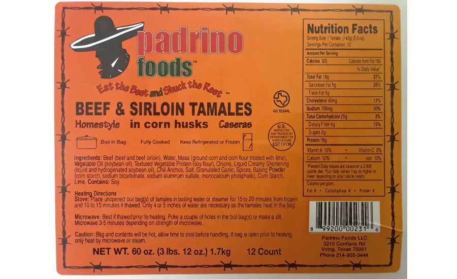 Padrino Foods, LLC recalls beef tamales products due to mislabeling