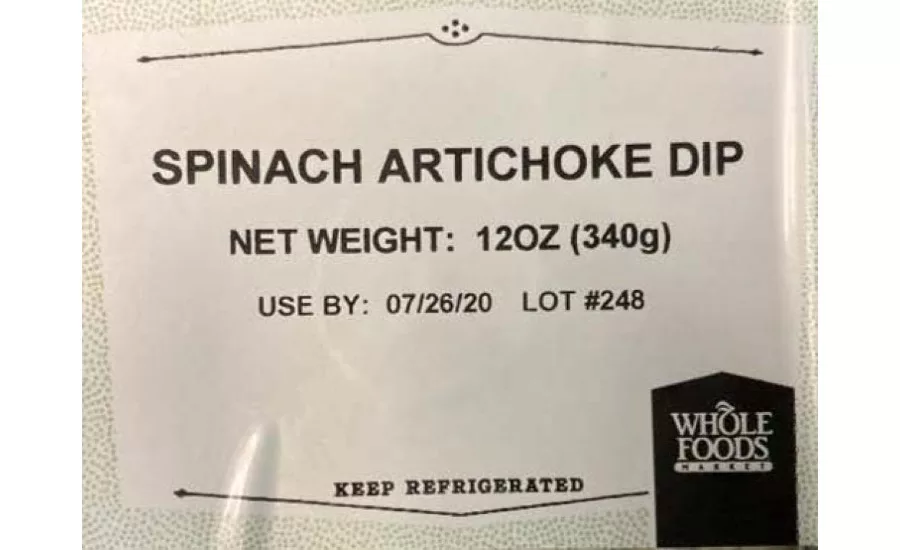 Winter Gardens Quality Foods, Inc., is voluntary recalling one of its products: Whole Foods Market Spinach Artichoke Dip carrying the lot code 248 and Use By: 07/26/20, because of an undeclared allergen (egg). Consumers who have a food allergy or have severe sensitivity to egg should not consume the product as it could result in a serious life-threatening allergic reaction. The lot code can be found printed on the lid.