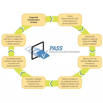 Thermo Scientific™ Product Assurance Services & Solutions (PASS) provides food producers with a fast, confidential way to thoroughly test and inspect product when physical contamination or nonconformity is suspected. Using state-of-the-art Thermo Scientific™ x-ray and metal detection systems, PASS can inspect products for a wide range of dense contaminants including ferrous, non-ferrous and stainless steel metals, glass, stone, bone, PVC-based plastics and rubber. In addition, PASS staff members are also experienced at detecting product damage, defects, missing products and over or underfilled packages.