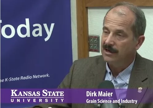 Pictured left: Dirk Maier, head of Kansas State University’s Department of Grain Science and Industry. Photo taken from a YouTube video of an interview about the Global Center for Grain-based Foods that K-State Radio Network's Eric Atkinson conducted with Maier last week.
