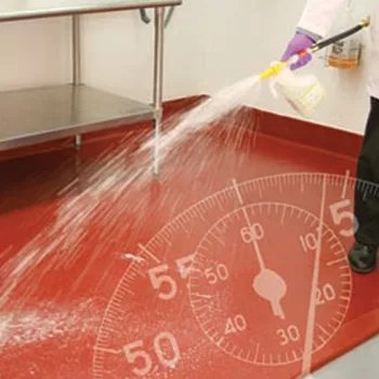 Once Listeria has been identified, the next step is to eliminate it. Dr. Grinstead recommends a two-step process using JohnsonDiversey products ElimineX® (a foaming drain cleaner) and Final Step 512™ (a sanitizer). Traditional cleaning procedures require disassembling the drain, hand scrubbing and numerous other steps. Using the ElimineX® Program, the user can leave the drain cover in place and spray with the ElimineX® Foaming Drain Cleaner. After allowing it to set for 30 to 60 seconds, the user can rinse off the ElimineX® Foaming Drain Cleaner and apply the Final Step 512™ Sanitizer. The ElimineX® Program reduces the time required for the Listeria elimination process from hours to minutes.