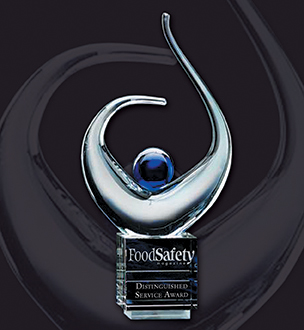 The Food Safety Magazine Distinguished Service Award honors individuals who best exemplify the characteristics of a dedicated food safety professional who has made a significant impact on food safety. The honored are recognized by members of the profession for their collective works in promoting and advancing science-based solutions for food safety issues.