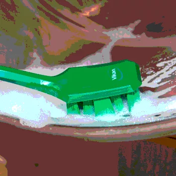 Color coding’s main purpose is to separate and organize. This is especially important in the food industry where cross-contamination, allergen cross-contact, and cleaning chemical strength are all concerns. Using the closest brush at hand is a recipe for disaster—and a costly recall.