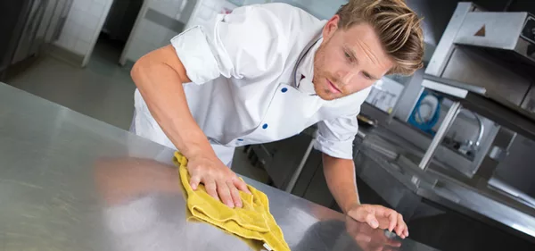 • Cleaning of the surface properly to remove organic material, including oil, grease, fat, and remaining food debris by applying an appropriate detergent on the surface and wiping the surface clean to sight and touch.