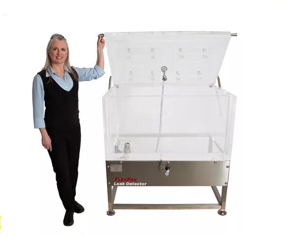 FlexPak Leak Detectors Inc. has introduced new extra-large drain ports on their acrylic vacuum chambers.