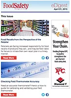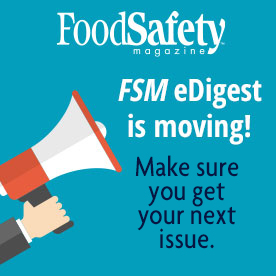 The next edition of your FSM eDigest will be coming to you in January from a new email address. To make sure you continue to receive regular editions please add our new email address FoodSafety@enews-bnp.com to your safe sender list. It will still be "From: Food Safety Magazine" – just at that new email address.