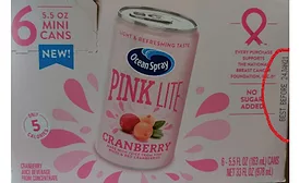 Ocean Spray Cranberries, Inc. is recalling a single production lot of 5.5oz cans of Pink Lite Cranberry Juice Drink because it may contain undeclared sulfites, which were erroneously added by a contract manufacturer.