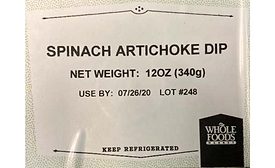 Winter Gardens Quality Foods, Inc., is voluntary recalling one of its products: Whole Foods Market Spinach Artichoke Dip carrying the lot code 248 and Use By: 07/26/20, because of an undeclared allergen (egg).