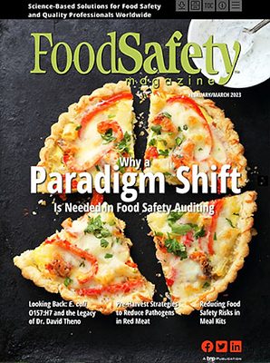 In the February/March issue of Food Safety Magazine, our cover story explores the envisioned future of auditing, considering the changing needs, expectations, and technological developments of the profession. Additional features discuss the regulatory changes inspired by the 1993 Jack in the Box E. coli outbreak and its impact on the foodservice industry, reducing food safety risks associated with meal kits, and pre-harvest strategies for reducing the presence of pathogens in red meat. Access the full issue here!